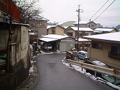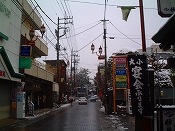 西武秩父駅前も白い雪だった。山の中が雪でも市街地は違うだろうという僕の予想は簡単に裏切られた。傘を差し、みぞれの降る中を少林寺へと歩いていった。僕の服装は普通の春の装いだったに。地面のところどころの白いところを避けて歩く。